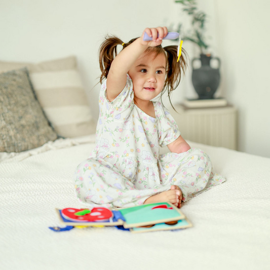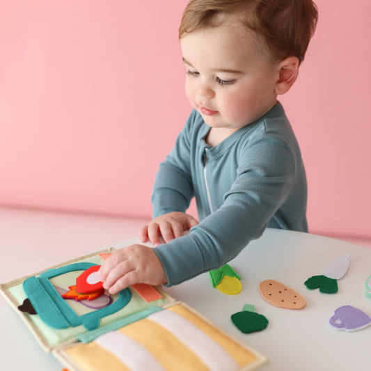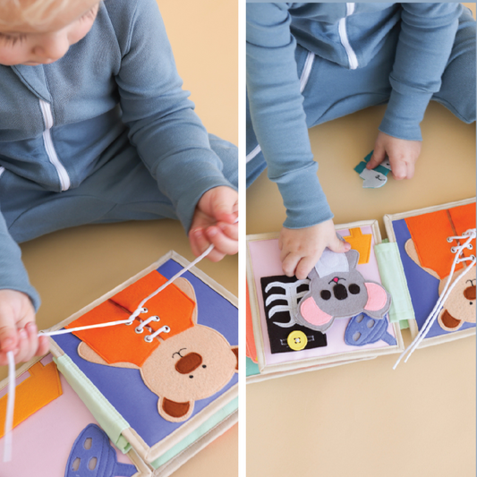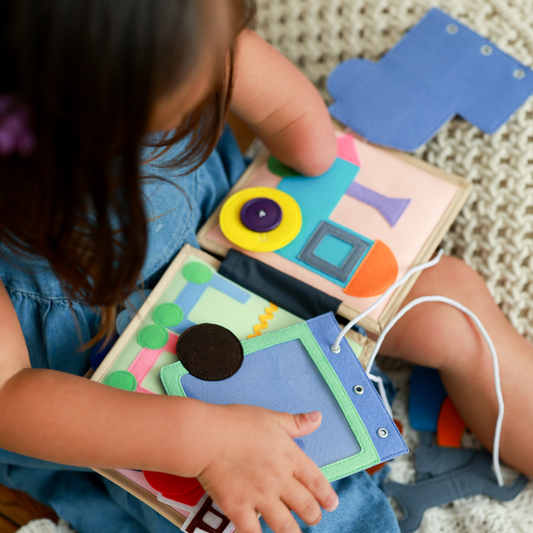 Our Toddler Quiet Book Collection features a range of book designed to cement concepts such as creative play, self-identity, vocabulary, pattern recognition, cause/effect/consequence, decision making, narration, and much more!